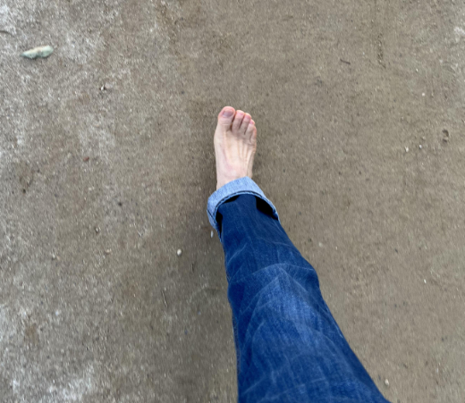 영상 2도씨의 날씨에 호기롭게 맨발로 먼저 걸어봅니다. 역시, 발이 시려옵니다.