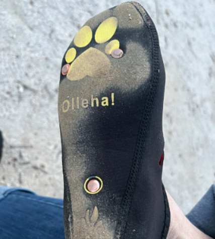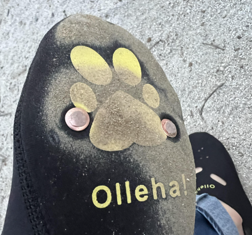 걷고 난 다음 발바닥을 보니 리벳을 그 자리에 그대로 잘 붙어 있습니다.