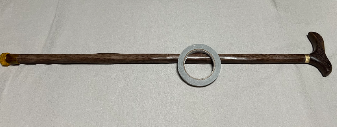 어르신용 지팡이와 전도성 테이프입니다. 온라인에서 쉽게 구매가능합니다. 대략 가격대는 지팡이가 만원 가량, 테이프가 6800원 정도입니다. 나무가 묵직하여서 지팡이 사용 시 무게감이 있어서 안정감이 있습니다.