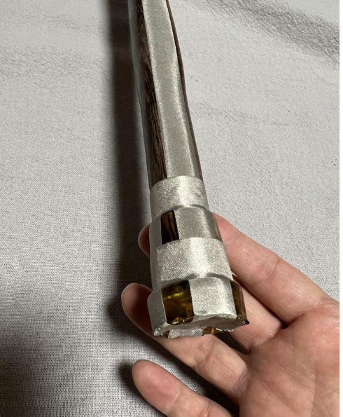 1). 손잡이 부위를 감싸면서 테이프를 부착합니다.