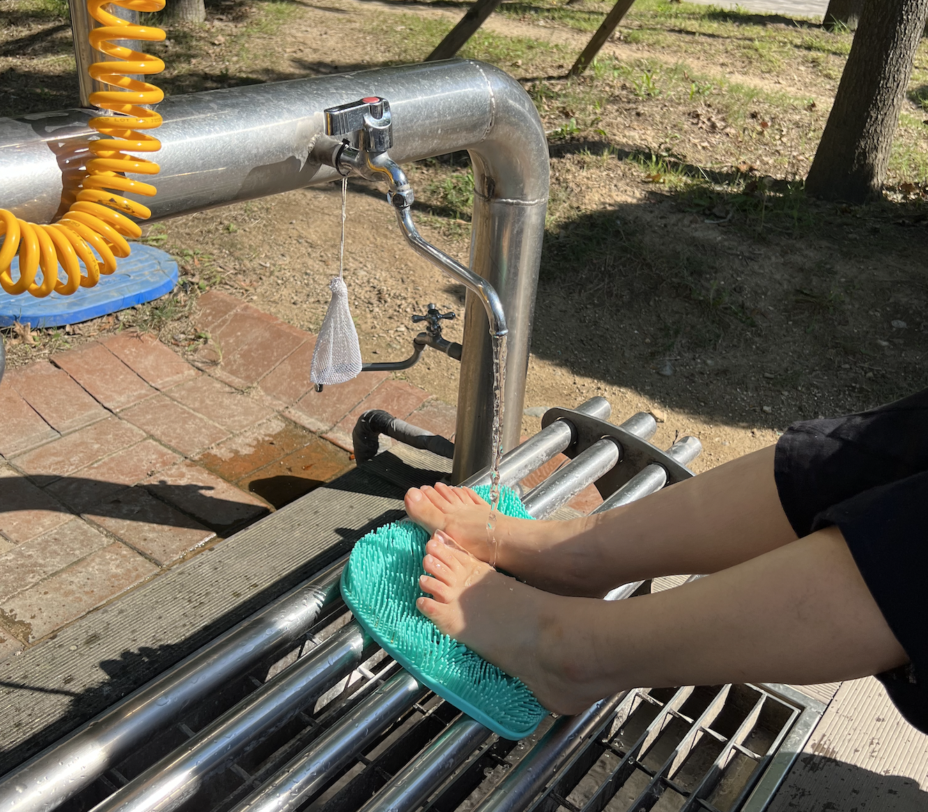 시에서 작심을 하고 조성한 숲길이다 보니, 아담하고 깨끗합니다. 신발을 놓아둘 수 있는 개방신발장과 발을 씻는 세족장 시설이 있습니다. 편하게 앉을 수 있는 돌의자와 발을 문 대서 닦을 수 있는 솔면, 고압공기 세척장치가 구비되어 발 씻기를 편하게 해 줍니다.